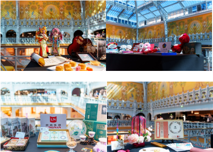 在活动现场,岭南集团更精心准备了极具特色的“必购必带”手信和文创产品,包括广彩、广绣等非遗艺术品,传统广式糕点,中秋月饼,羊城八景主题书签、以及《消失的名菜》书籍等文创衍生品,还有十五运的吉祥物“喜洋洋”与“乐融融”及福字徽章、拼图等文创周边及广州礼物,生动展示了传统底蕴和潮流时尚融合的广州餐饮文化,吸引现场嘉宾纷纷驻足了解和拍照打卡。